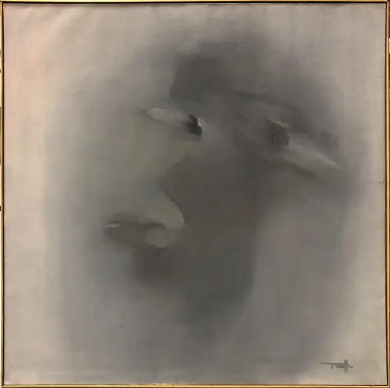 Tonia CARIFFA (1924-2025). Visages. Deux huiles sur toile, signées en bas à droite. 80 x 80 cm