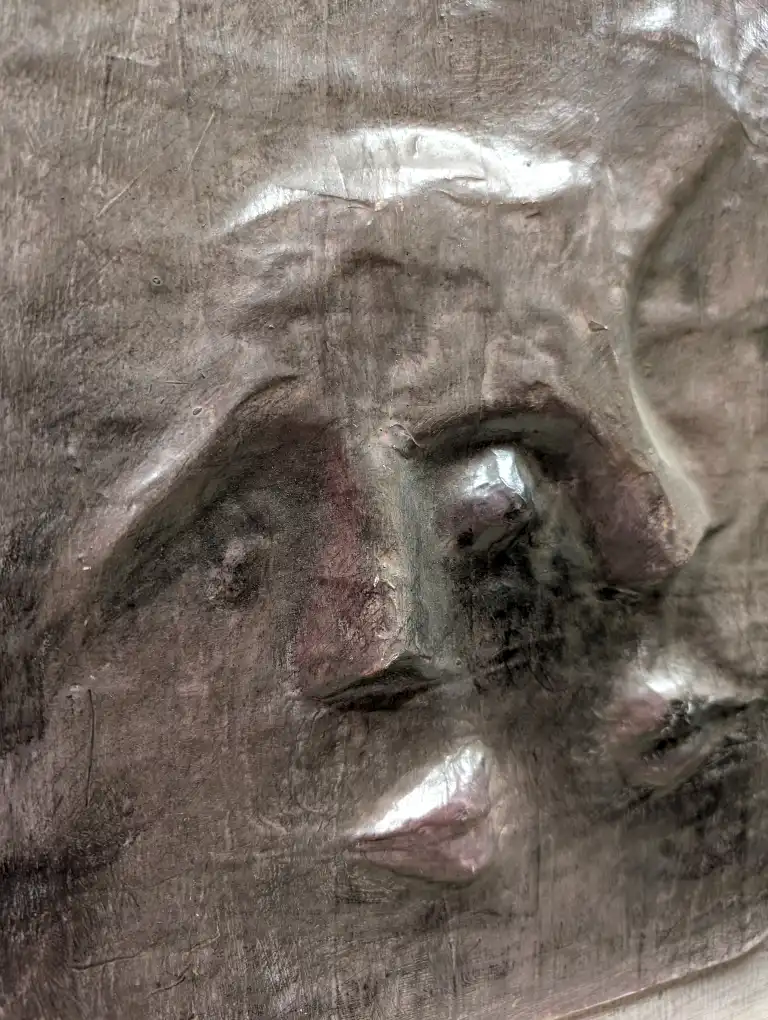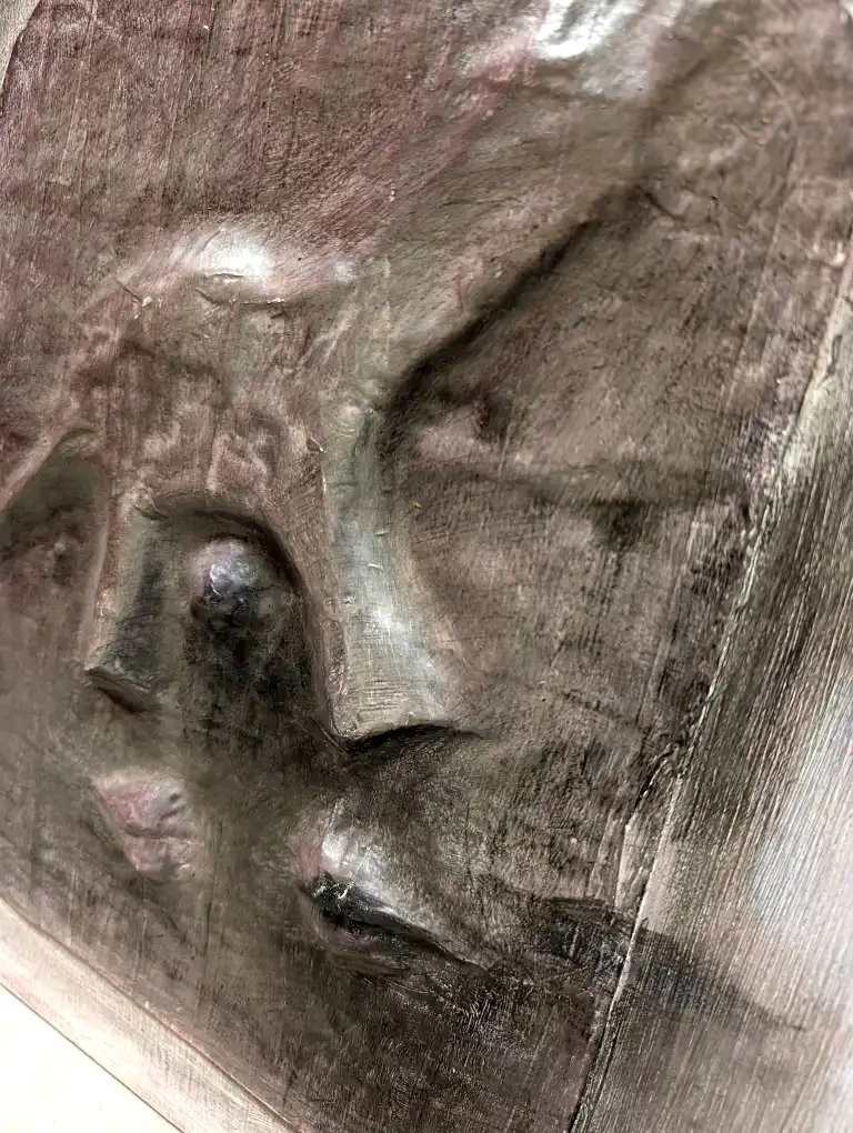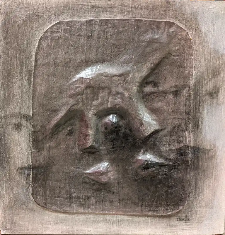 Tonia CARIFFA (1924-2025). Visage. Technique mixte en relief, signée en bas à droite. 39 x 38 cm