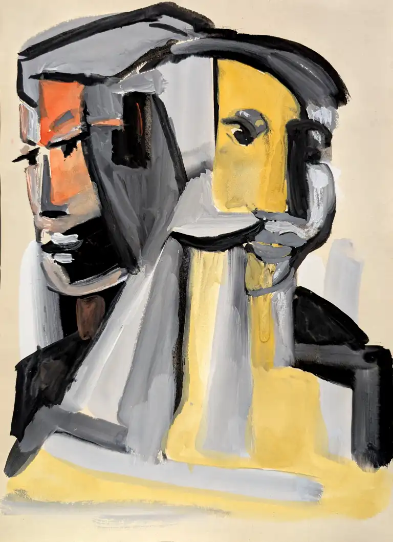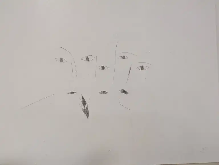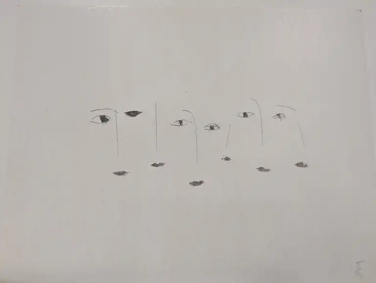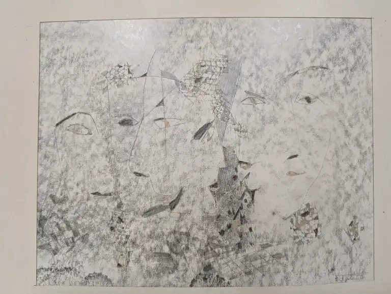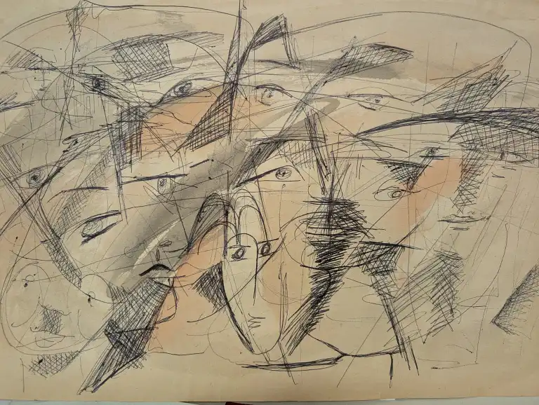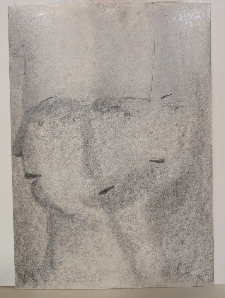 Tonia CARIFFA (1924-2025). Visages - Portraits. Seize dessins : crayon, stylo, feutre, gouache aquarelle, dont six signés. Formats variés.