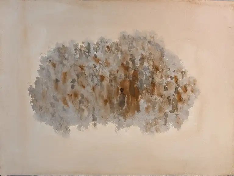 Tonia CARIFFA (1924-2025). Foules. Deux dessins à l'aquarelle et à la gouache. 56 x 78 cm, 80 x 51 cm.