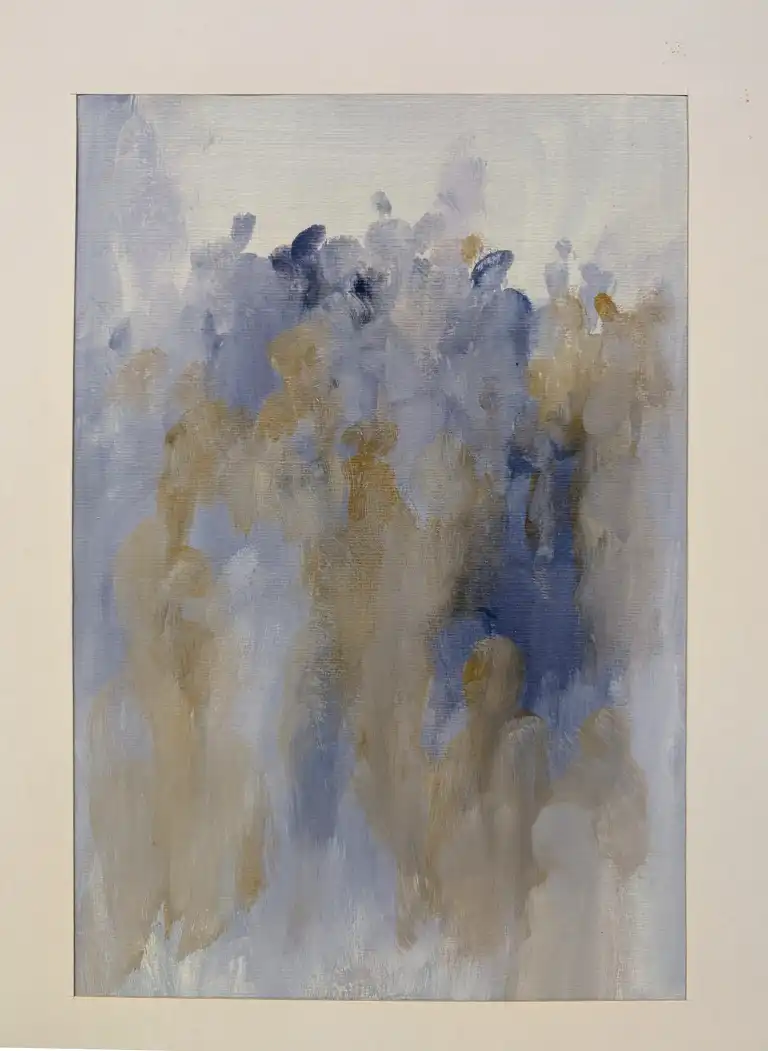 Tonia CARIFFA (1924-2025). Foules. Deux dessins à la gouache, dont l'un signé en bas à gauche. 20 x 27 cm, 26 x 18 cm