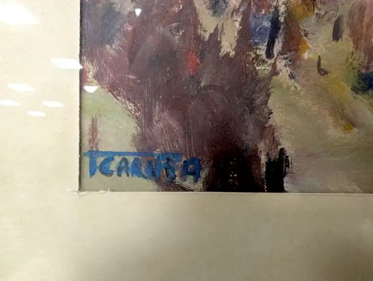 Tonia CARIFFA (1924-2025). Paysage. Dessin à la gouache et pastel, signé en bas à gauche. 21 x 30 cm