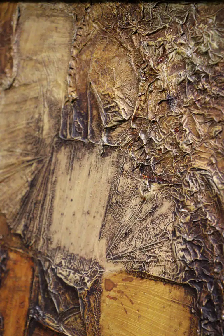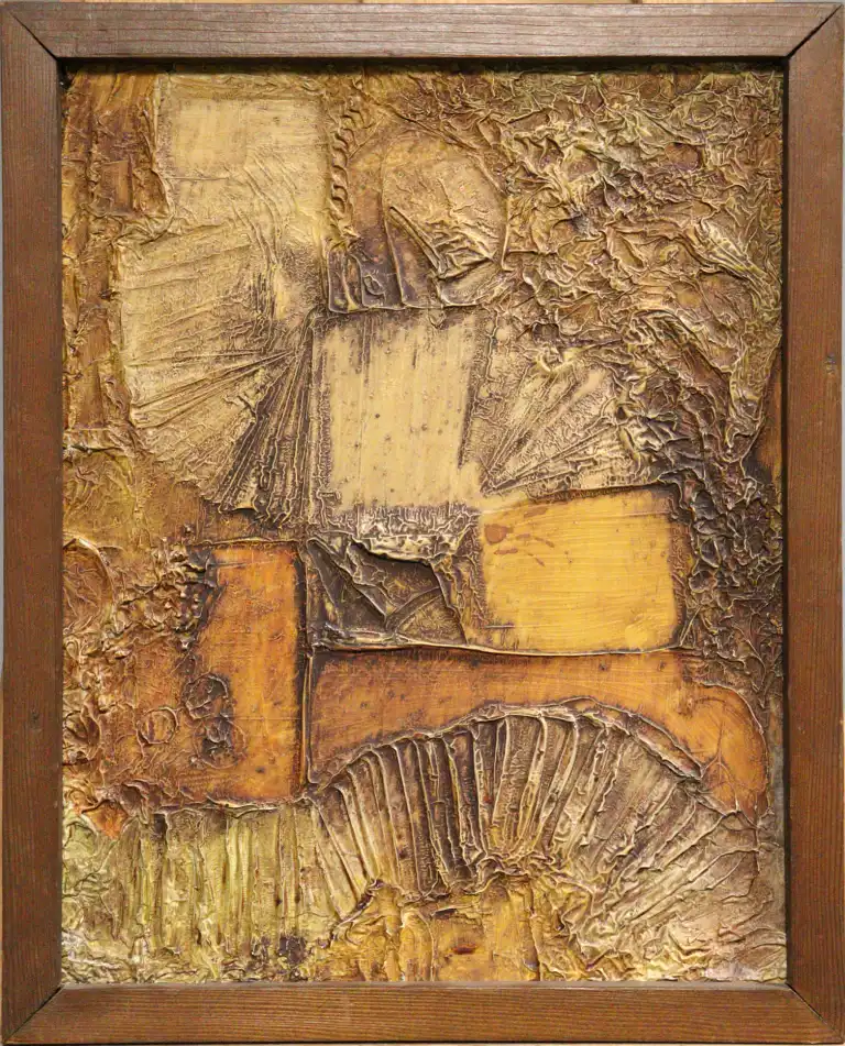 Dans le goût de Cy TWOMBLY (1928-2011). Composition abstraite. Technique mixte en relief sur contreplaqué. Signé "CY" et daté "71" à l'arrière. 27 x 35 cm