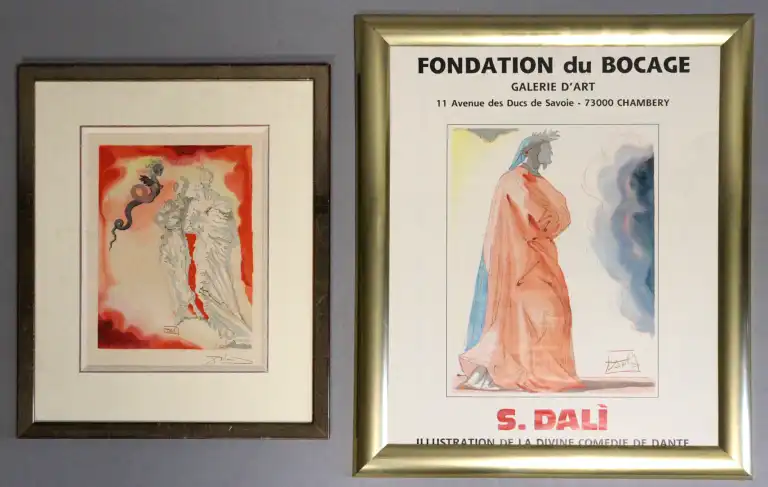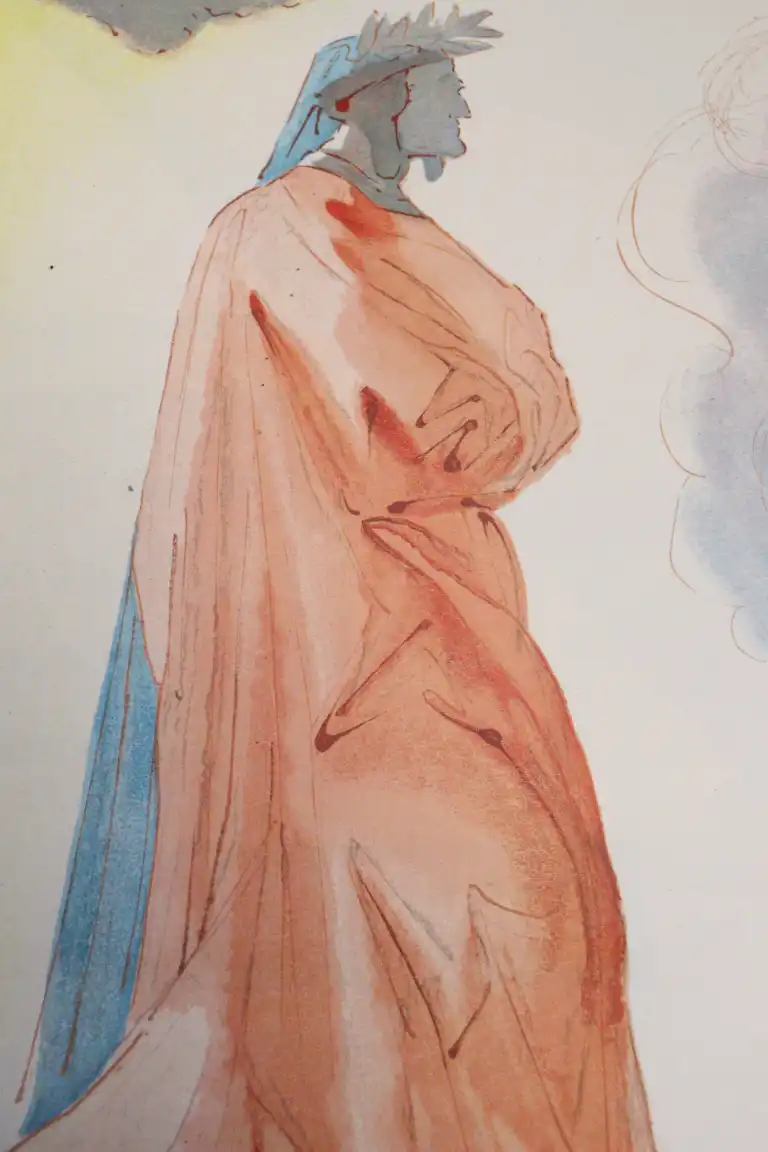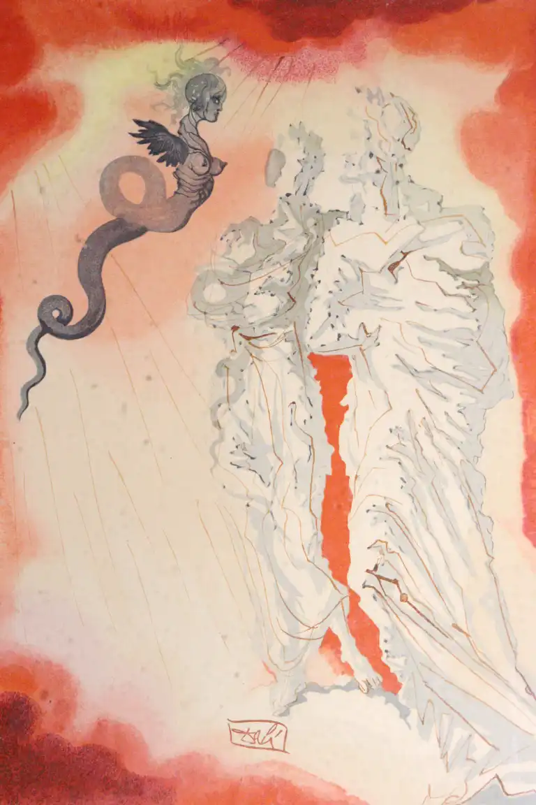 Salvador DALI. Les Usuriers. Xylographie en couleurs, signée en bas à droite à la mine de plomb. Série de la Divine Comédie de Dante Alighieri. 33 x 26 cm
