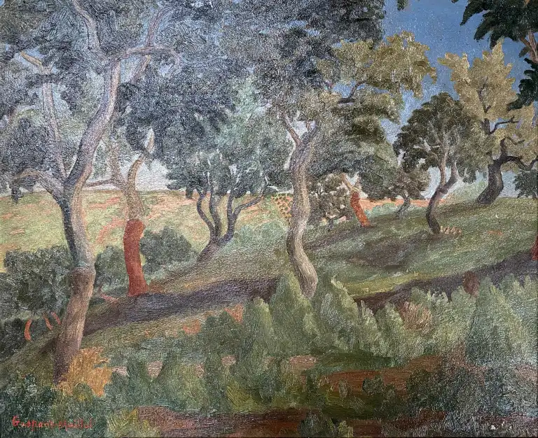 Gaspard MAILLOL (1880-1945/46). Les Chênes. Huile sur panneau, signée en bas à gauche. 50 x 61 cm