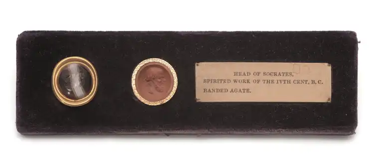 A Graeco-Roman banded agate intaglio depicting the head of Socrates