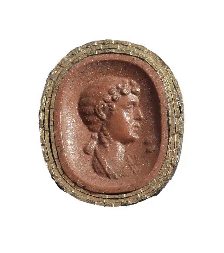 Intaille. Buste de Julia Titi (63-91) à gauche. Deux épis de blé devant elle.