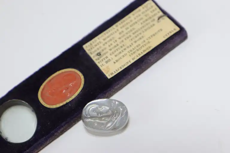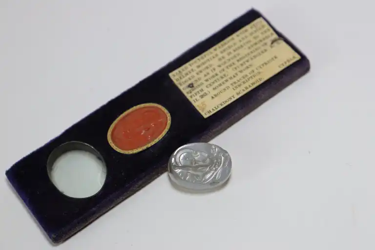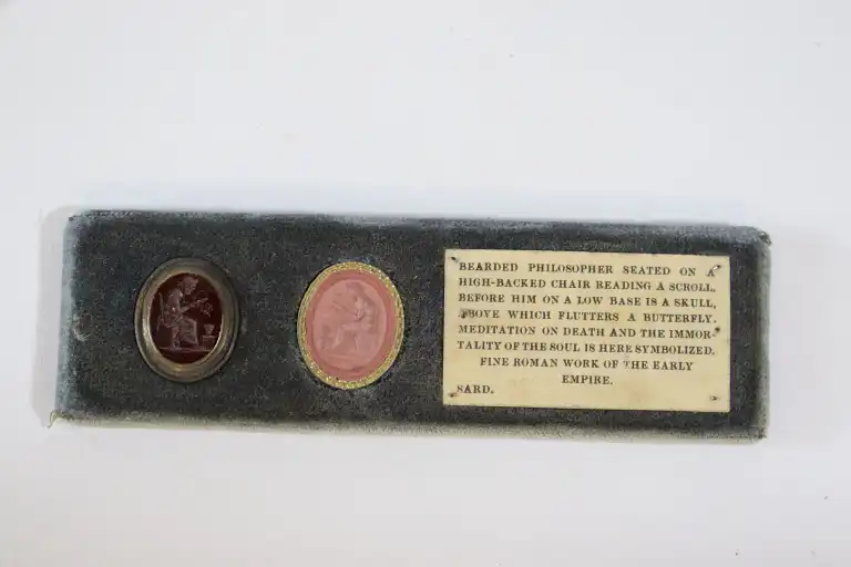 Présenté sur son montage en bois et velours cramoisi du début du XXème s., avec une empreinte et un cartel.