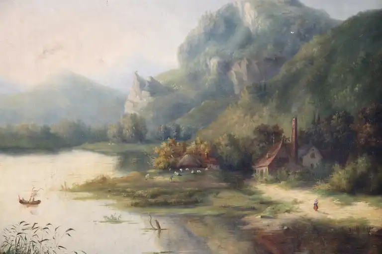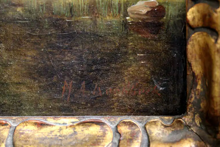 Marinus Adrianus KOEKKOEK II (1873-1944). Paysage animé au bord de lac. Huile sur toile, signée en bas à droite.40 x 50 cm.