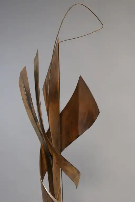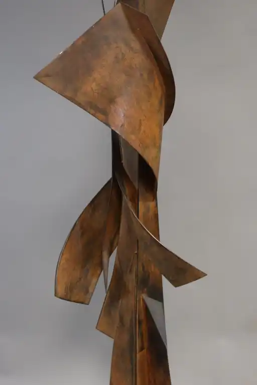 Maurice MARTY (né en 1935). Composition verticale. Sculpture en tôle découpée, partiellement ajourée et aspect rouillé, signée et datée 2007. H.: 154 cm