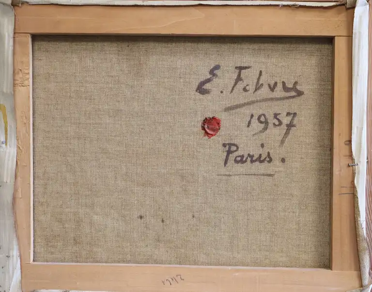 Edouard FEBVRE (1885-1967). La roulotte, 1957. Huile sur toile, signée en bas à gauche, contresignée, datée et située Paris au dos. 33 x 41 cm