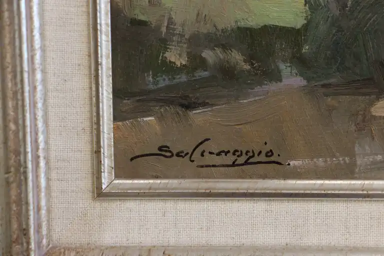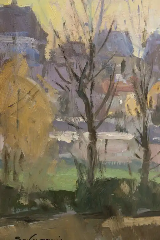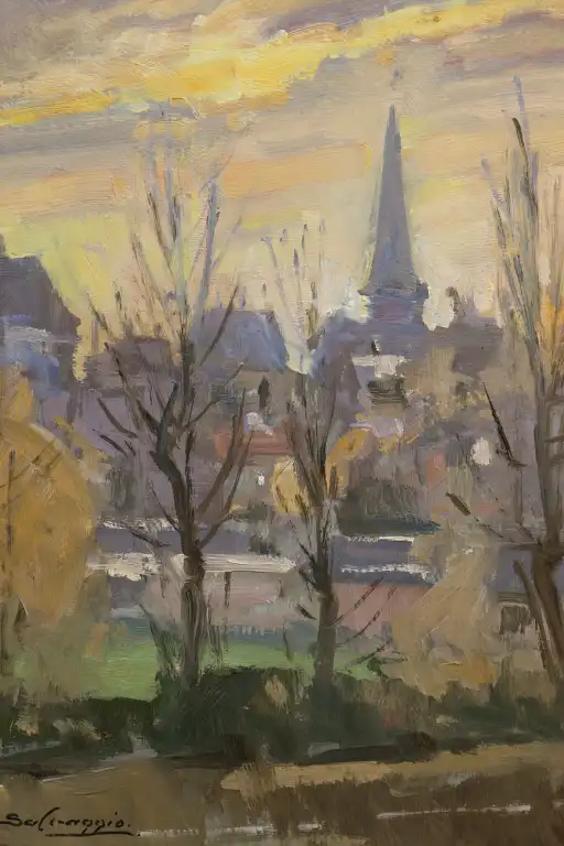 Jose SALVAGGIO (né en 1953). Bischeim. Huile sur carton, signée en bas à gauche. 35 x 47 cm