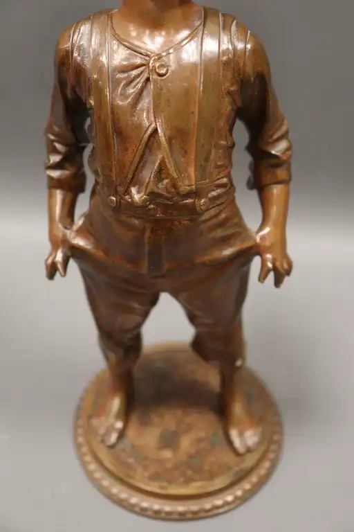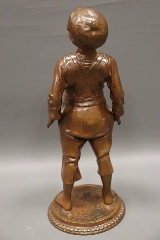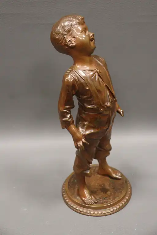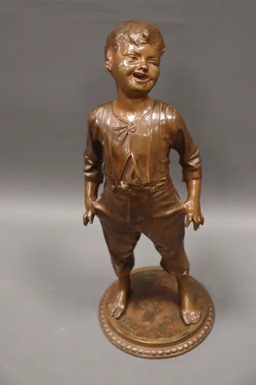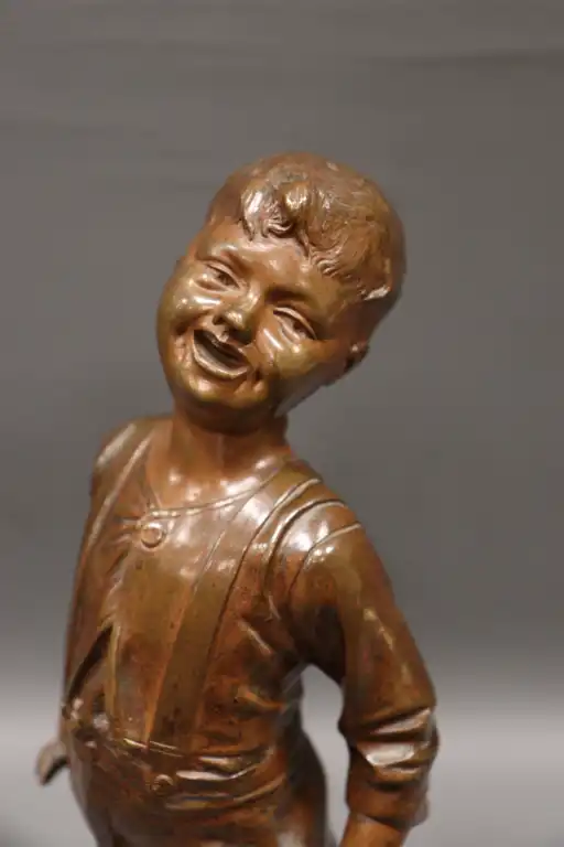 Anonyme. Jeune garçon riant Epreuve en bronze à patine brune sur une base circulaire. H. : 30 cm