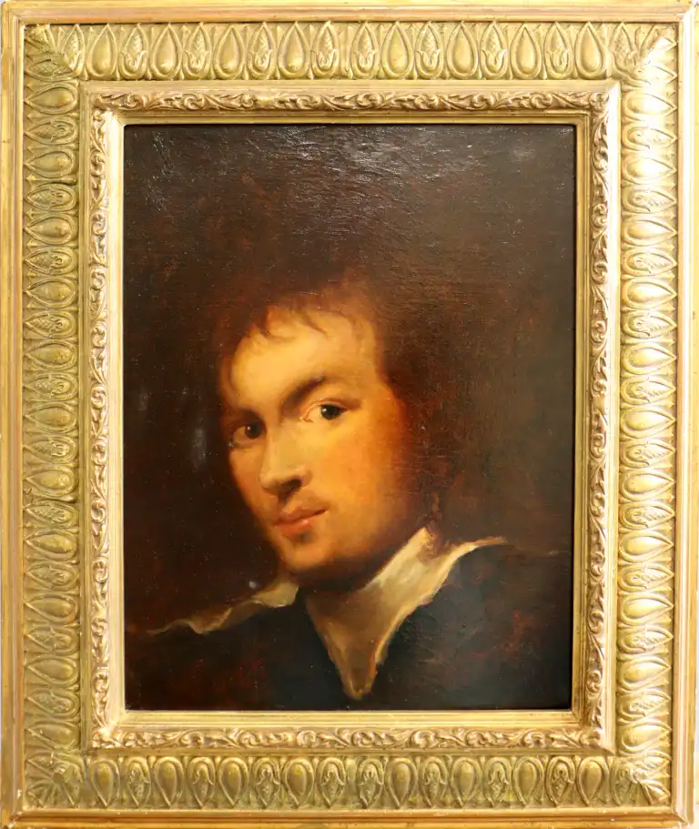 Ecole du XIXème siècle, dans le goût de Van DYCK. Portrait d'homme. Huile sur toile. 40,5 x 32 cm (Manques, repeints et restaurations)