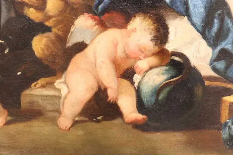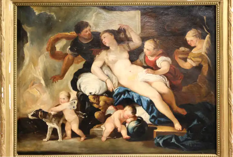 Ecole du XIXème siècle, d'après GIORDANO. Mars et Vénus. Huile sur toile. 63 x 79,5 cm (Restaurations)
