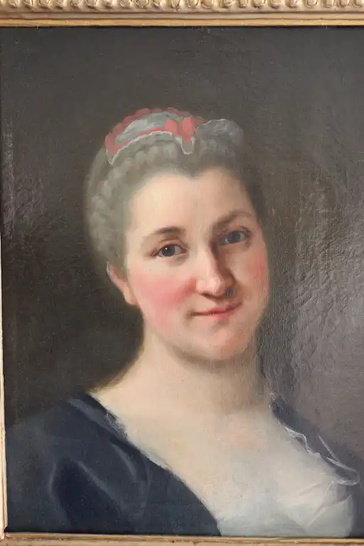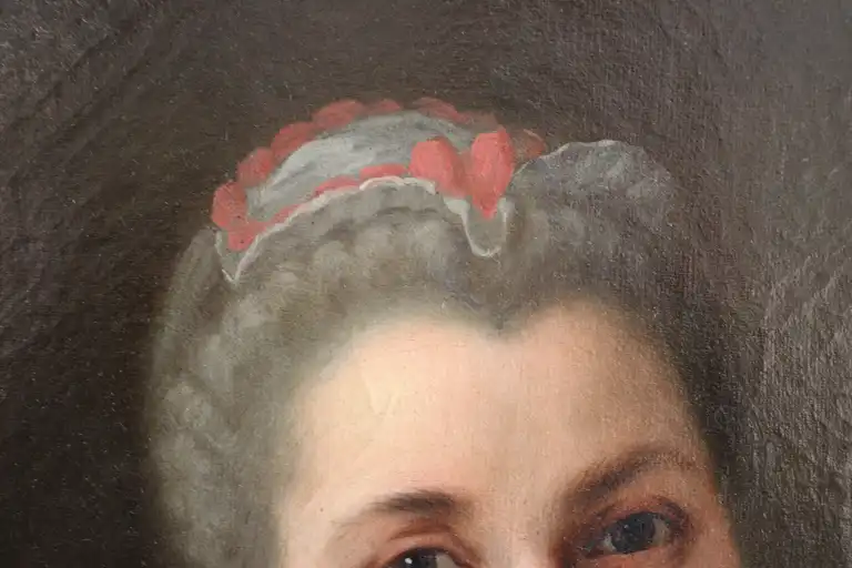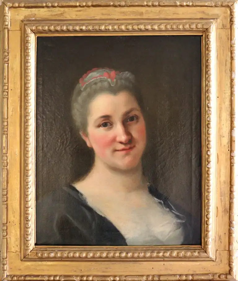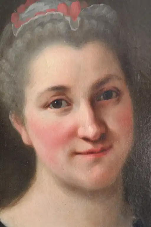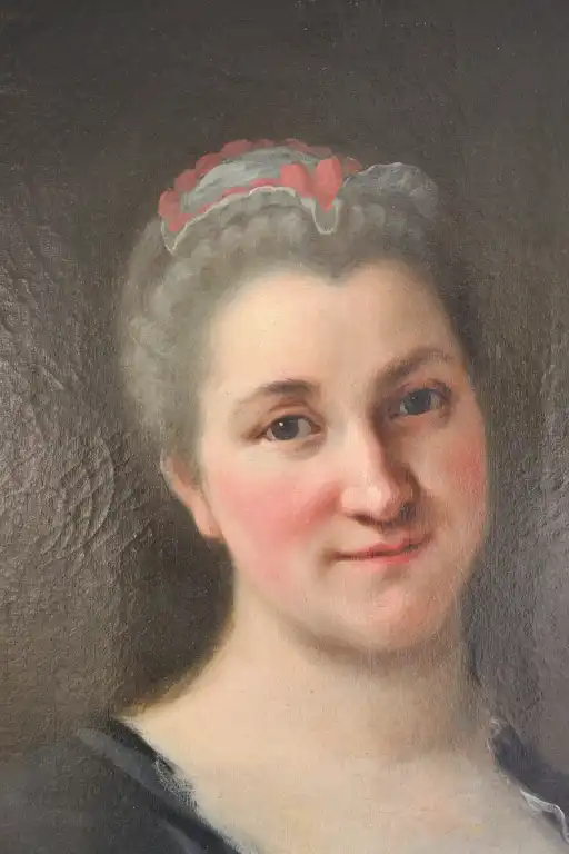 Ecole du XVIIIème siècle. Portrait de femme à la coiffe. Huile sur toile. 46,5 x 38 cm (Restaurations)