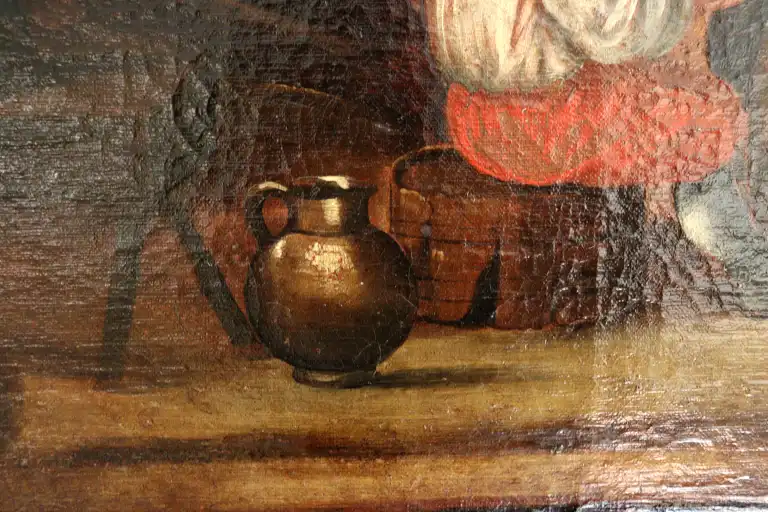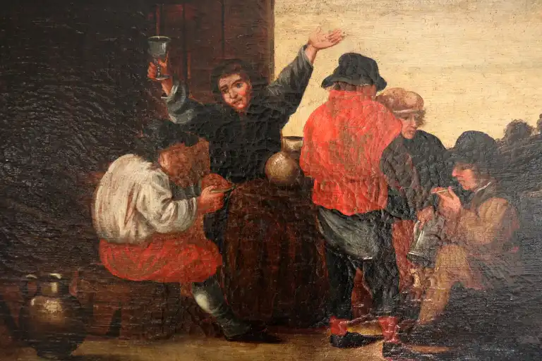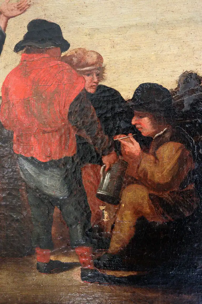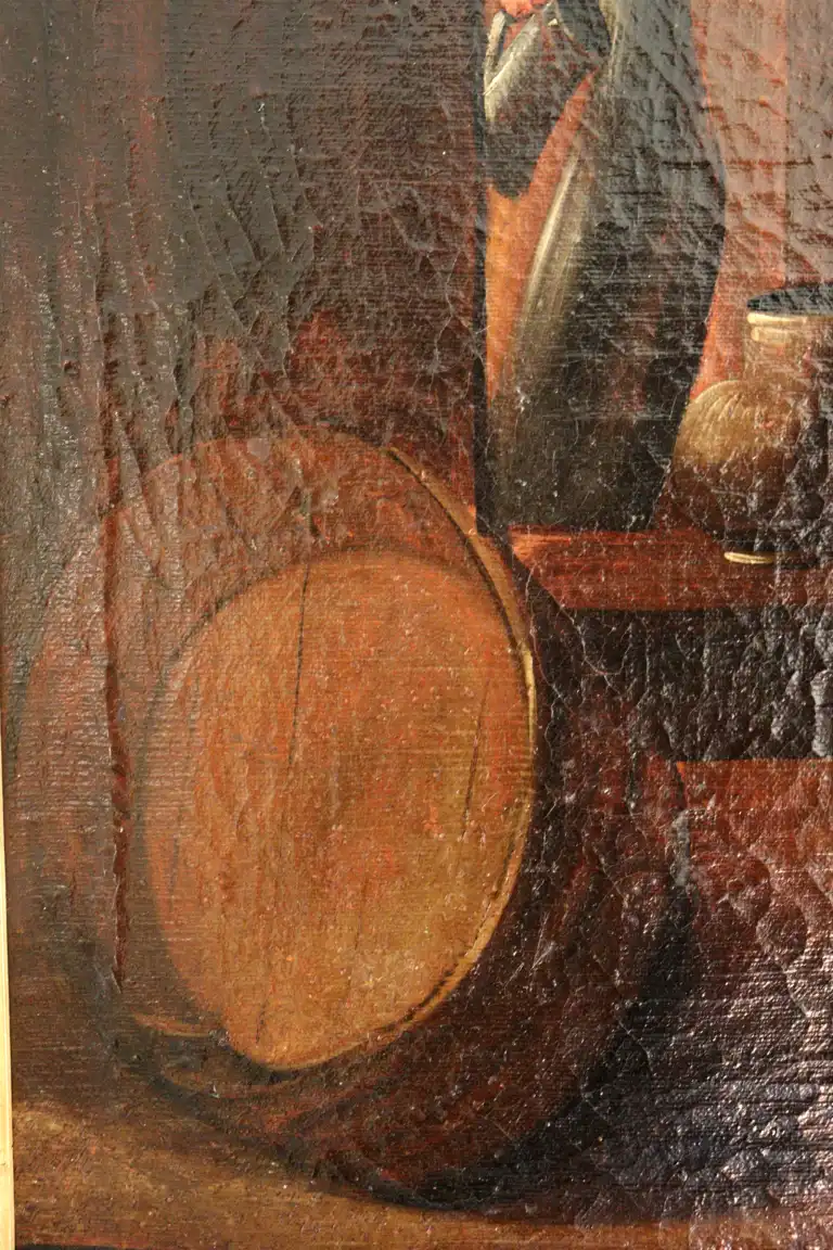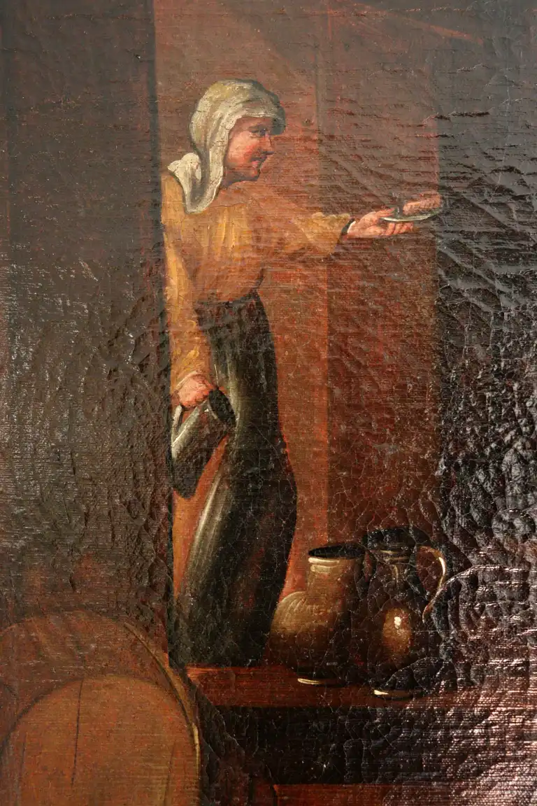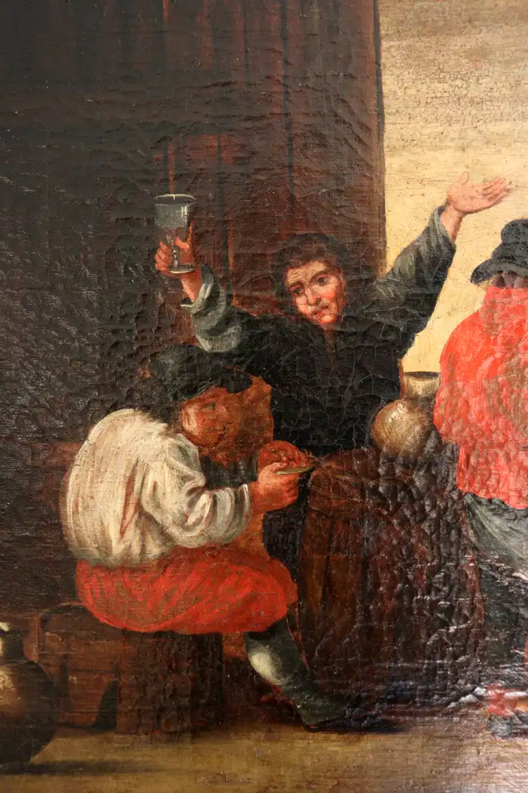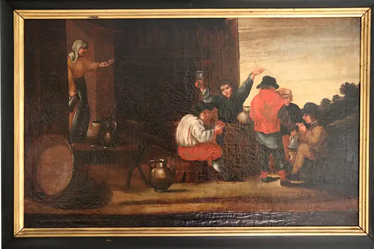 Ecole du XVIIIème siècle, dans le goût de TENIERS. Scène de taverne. Huile sur toile. 55,5 x 89 cm (Restaurations)