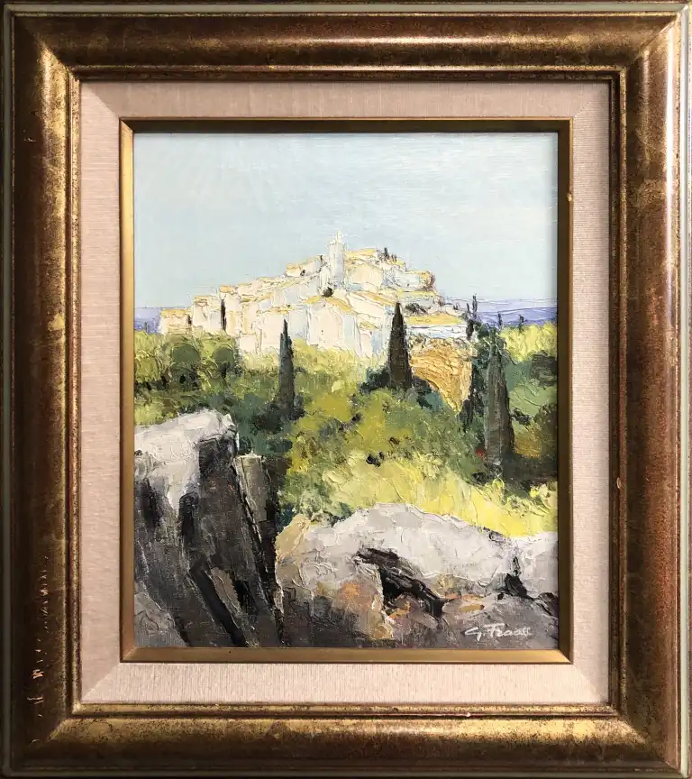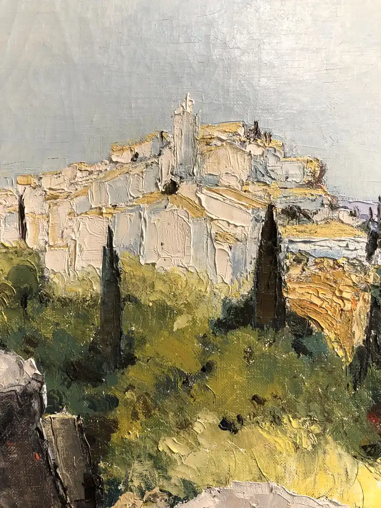 Gustave FRAAS (1920). Le village Roussillon. Huile sur toile, signée en bas à droite et titrée au dos. 42 x 33 cm