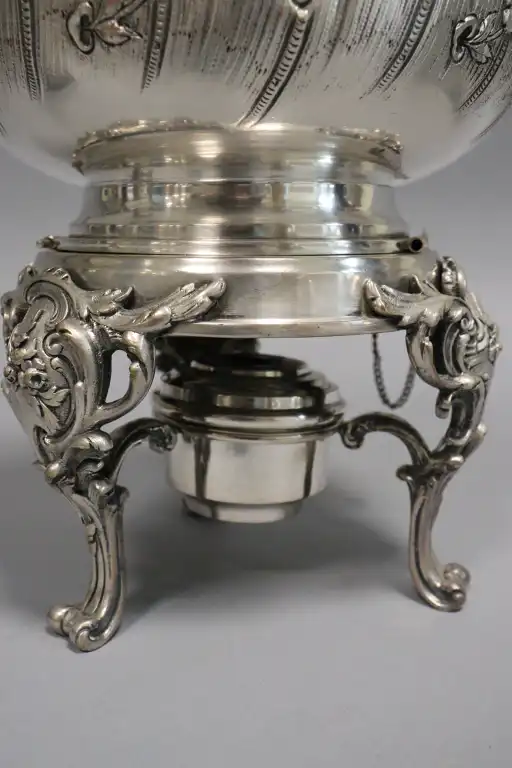 - Samovar en métal argenté à décor de style rocaille. H.: 37,5 cm
