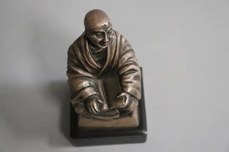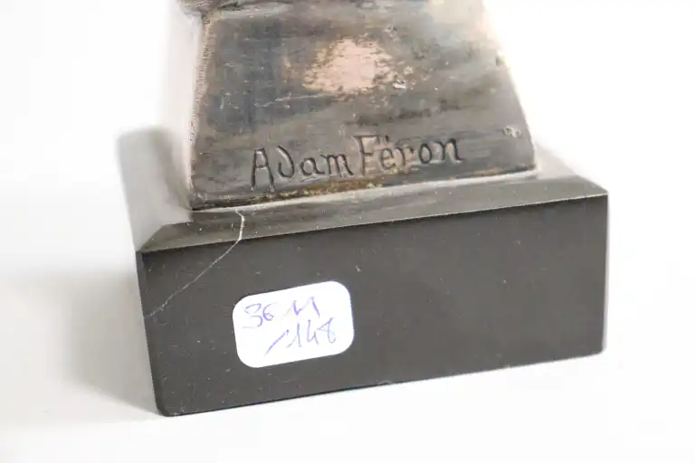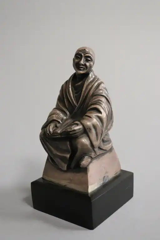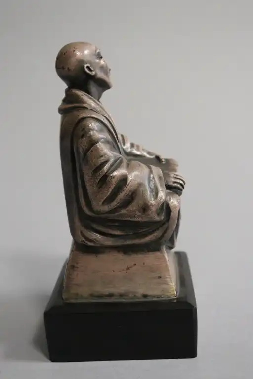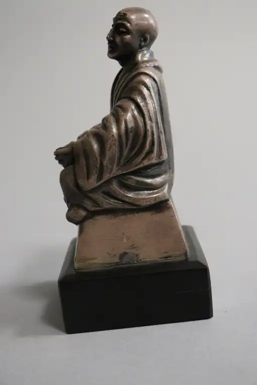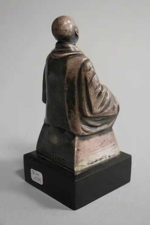 Adam FERON (XXème siècle). Moine bouddhiste. Epreuve en bronze argenté, signée au dos. Sur un socle en marbre noir. H.: 12,5 cm sans le socle