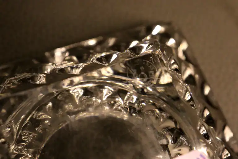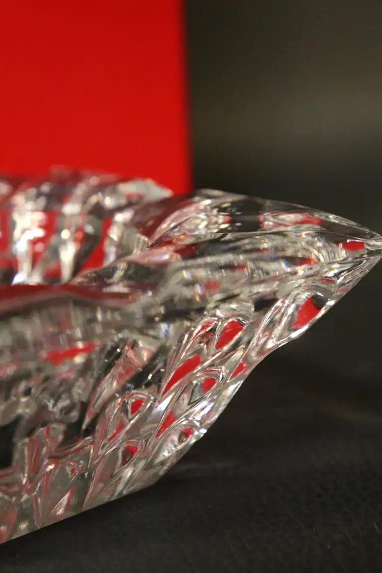 - Cendrier en cristal de forme pyramidale à décor de gouttes en creux. Estampillé sous la base. H.: 5 cm - L.: 12,5 cm