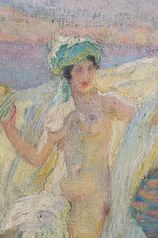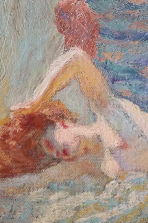 Paul Jean GERVAIS (1859-1944). Jeunes femmes au bain. Huile sur toile, signée en bas à gauche. 53 x 41 cm