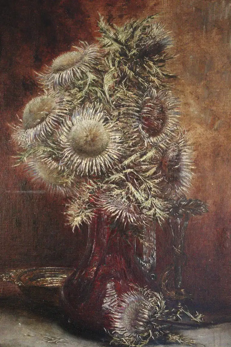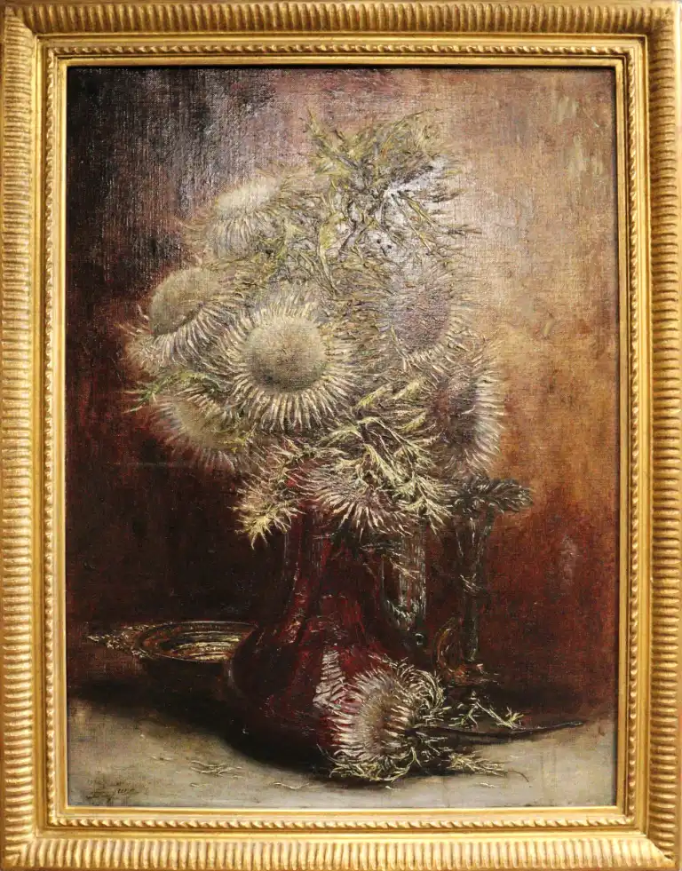 Charles JUNG (1865-1936). Nature morte aux chardons. Huile sur toile, signée et datée en bas à gauche. 73 x 55 cm