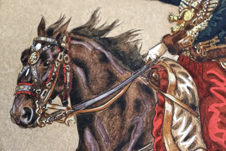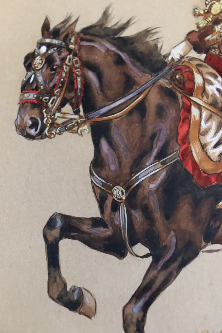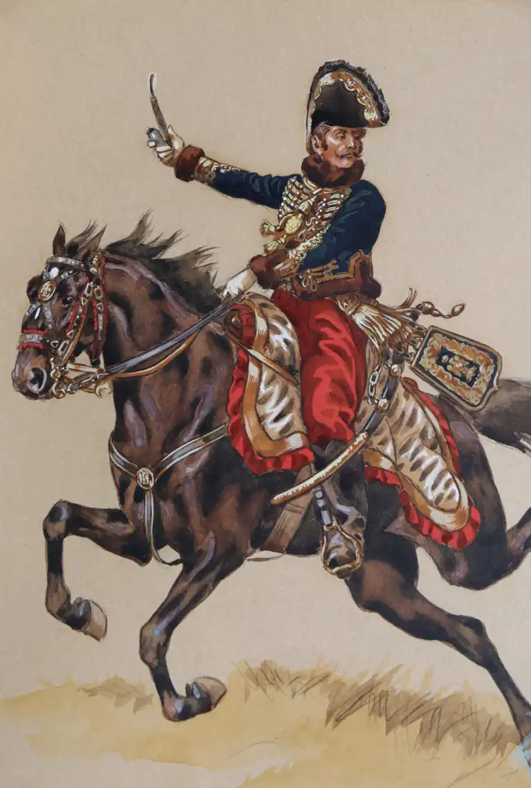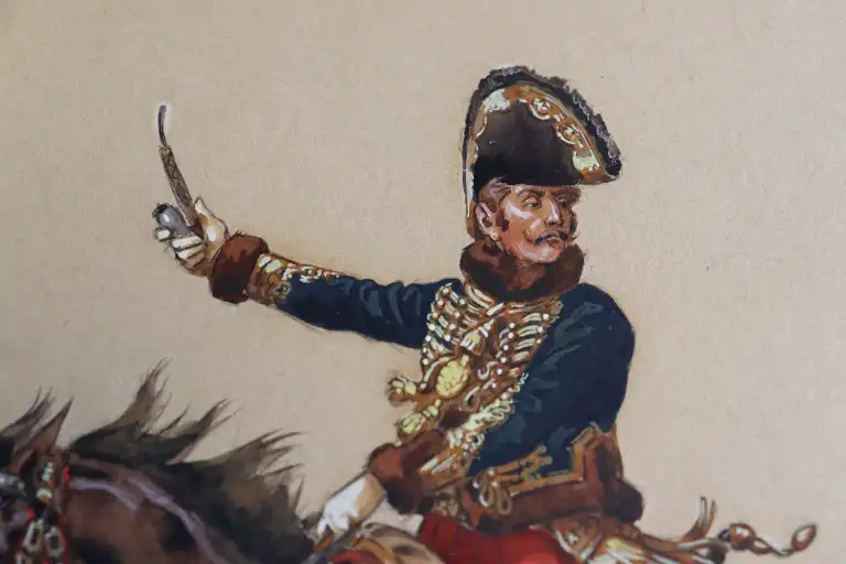 Victor HUEN (1874-1939). Général Lasalle à cheval. Aquarelle, signée en bas à droite. 29.5 x 22.5 cm à vue