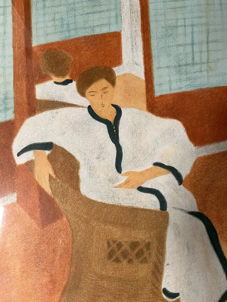 Pierre BONCOMPAIN (né en 1938). Femme dans un intérieur. Lithographie, signée en bas à droite et numérotée 115/120 en bas à gauche. 74 x 54 cm à vue
