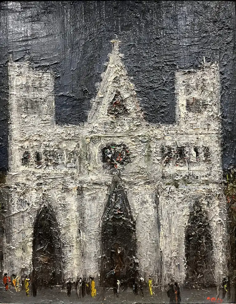 Michel MALY (1936-2018). La cathédrale Saint-Jean à Lyon. Huile sur toile, signée en bas à droite et titrée au dos. 35.5 cm 27 cm