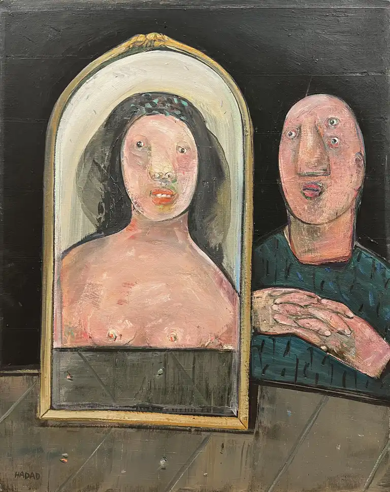 Abraham HADAD (né en 1937). Les Deux, 1988. Huile sur toile, signée en bas à gauche, contresignée, datée et tirée au dos. 81,5 x 65,5 cm