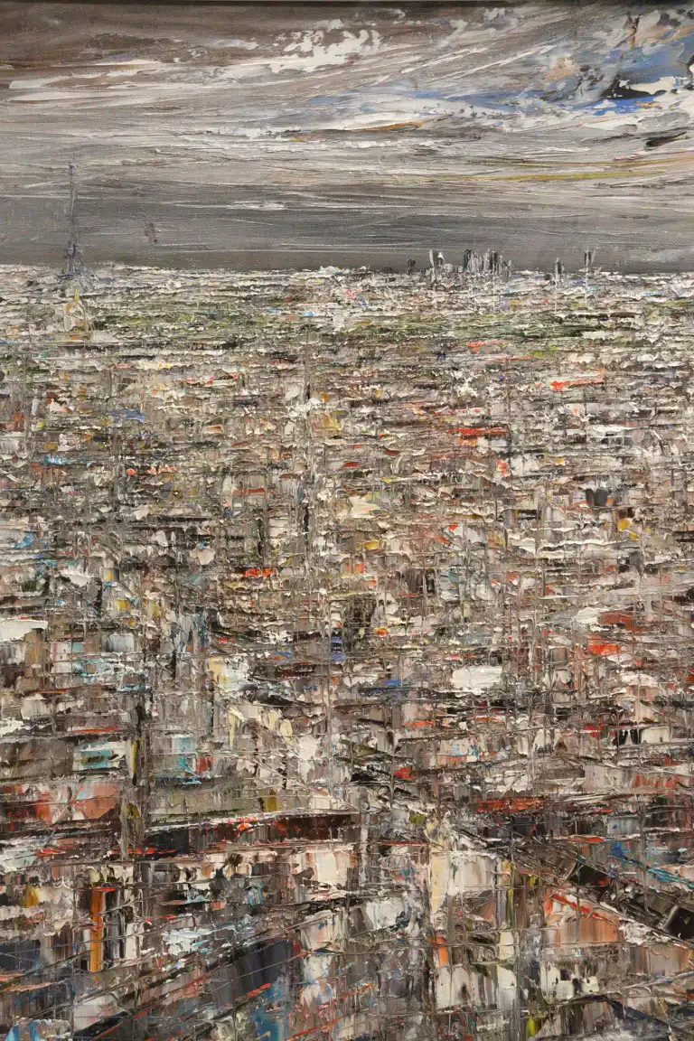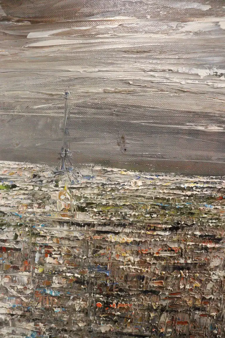 Pierre REYMOND. Vue de Paris. Huile sur toile, signée en bas à droite. 100 x 50,5 cm