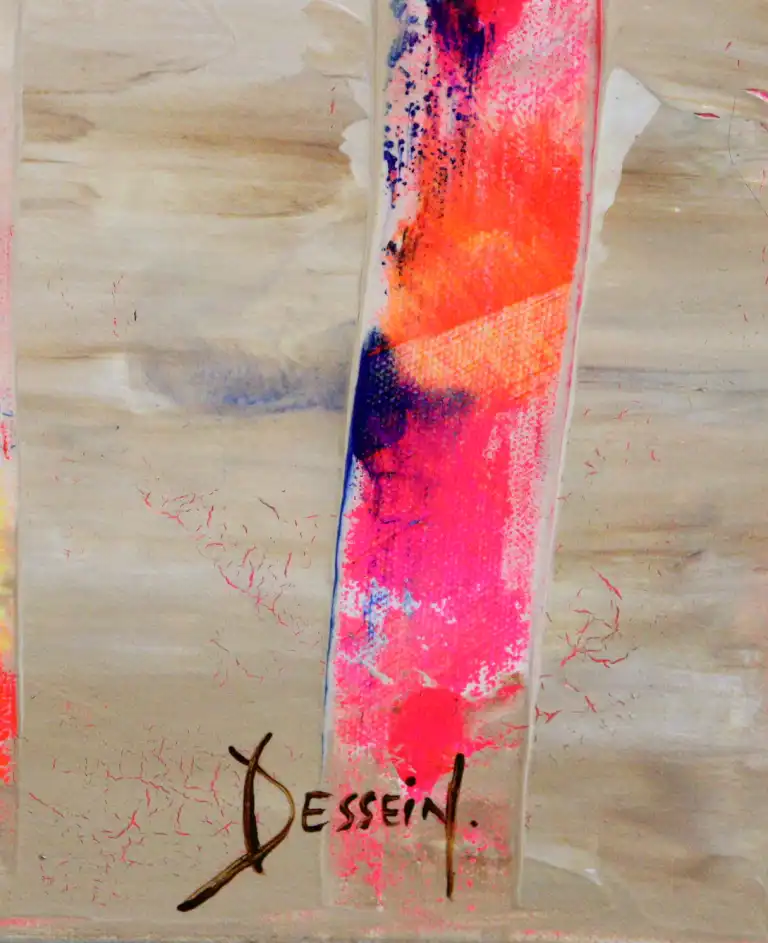 Delphine DESSEIN (1986 - ). Libération 56, 2024. Acrylique sur toile, signée en bas à droite, contresignée, titrée et datée au dos. Certificat d'authenticité. 100 x 100 cm