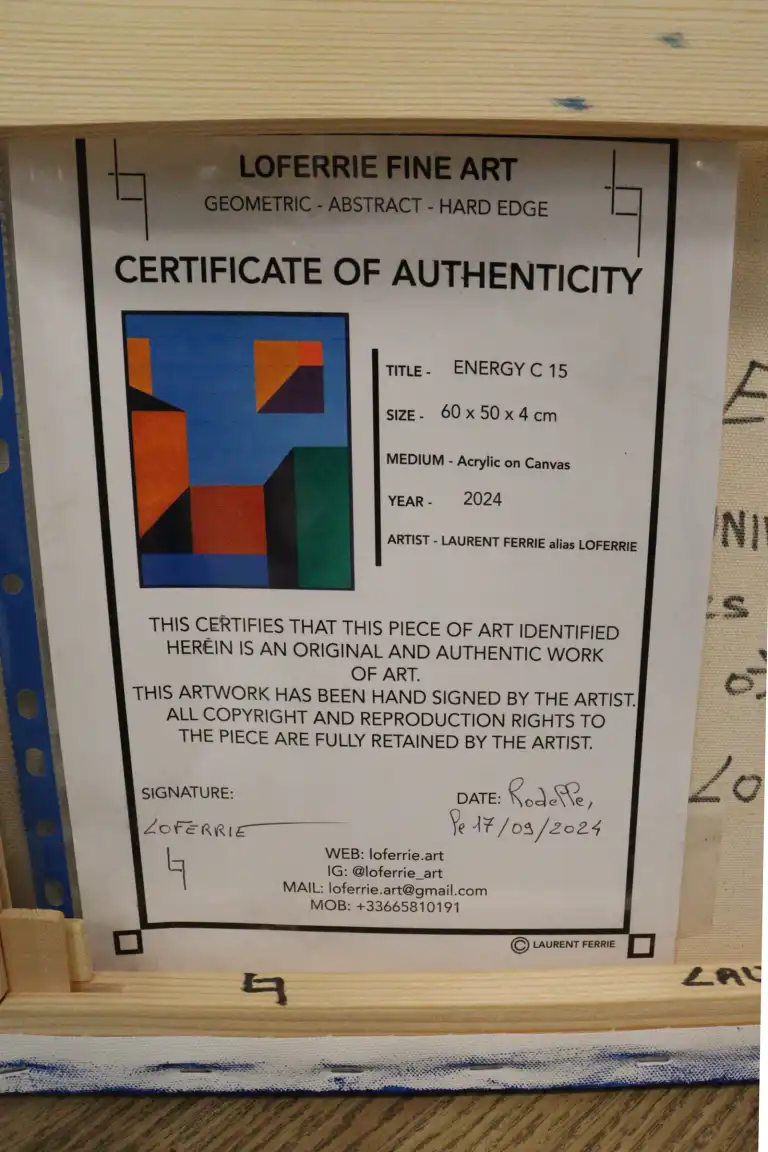 Laurent FERRIE dit LOFERRIE. Energie C15, 2024. Acrylique sur toile, signée en bas à droite, contresignée, titrée, datée et localisée "South of France 2024" au dos. Certificat d'authenticité. 60 x 50 cm