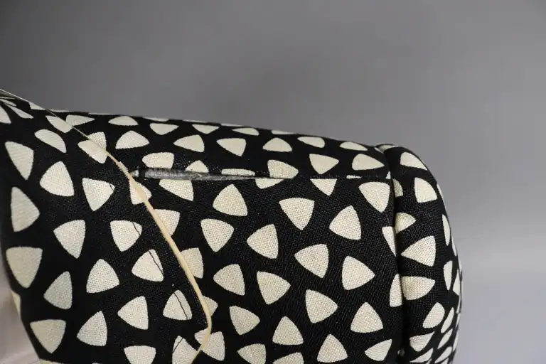 GIVENCHY. Nouvelle Boutique. Blazer en lin à motifs de triangles blancs sur fond noir. Taille 36 (décousu à l'épaule, en l'état)