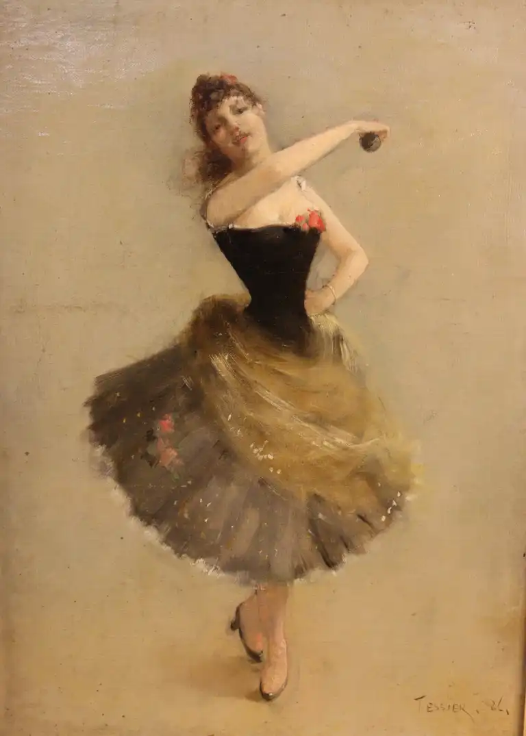 Louis Adolphe TESSIER (1858-1915). Danseuse de flamenco, 1886. Huile sur toile, signée et datée en bas à droite. 32.5 x 24.5 cm