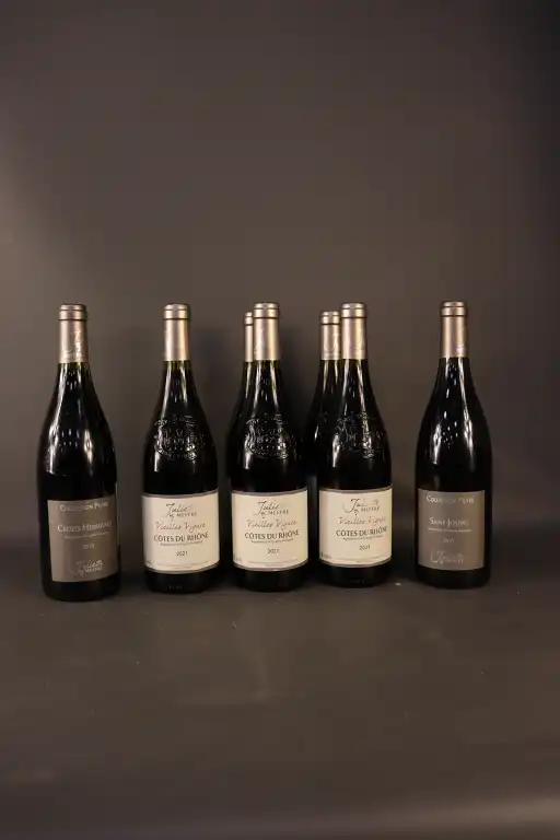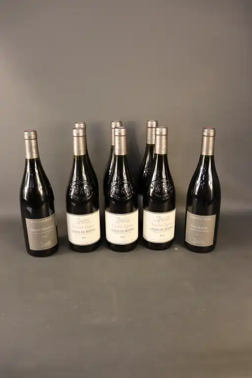 8 bouteilles : Juliette Meffre, Collection Privée, Saint-Joseph, 2015 (x1) - Juliette Mieffre, Collection Privée, Crozes-Hermitage, 2015 (x1) - Juliette Mieffre, Côtes du Rhône, Vieilles Vignes, 2021 (x6)