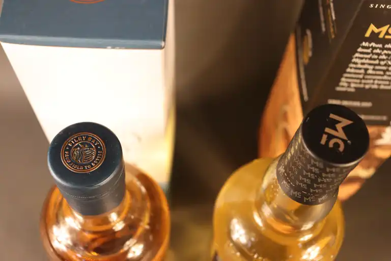2 bouteilles : Filey Bay, Yorshire Single Malt Whisky, Flagship, avec emboitage - McPEAT, House of McCallum, The Art of Whisky, Single Malt Scotch Whisky, avec emboitage