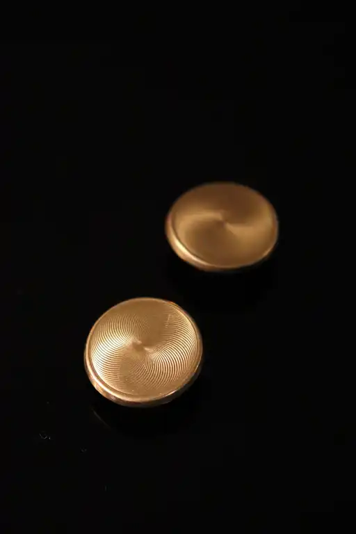 Paire de boutons de manchette en or jaune 18 K (750) ronds à décor de lignes guillochées. Poinçon tête d'aigle. Poids : 4.88 g
