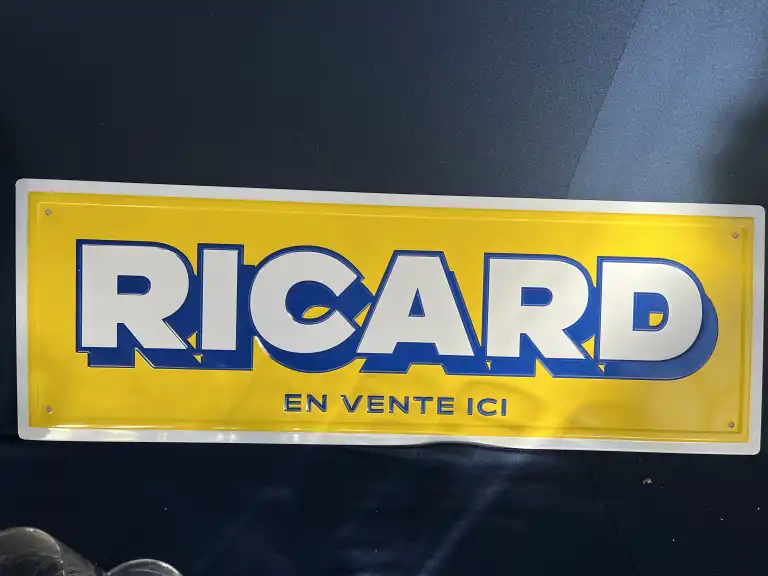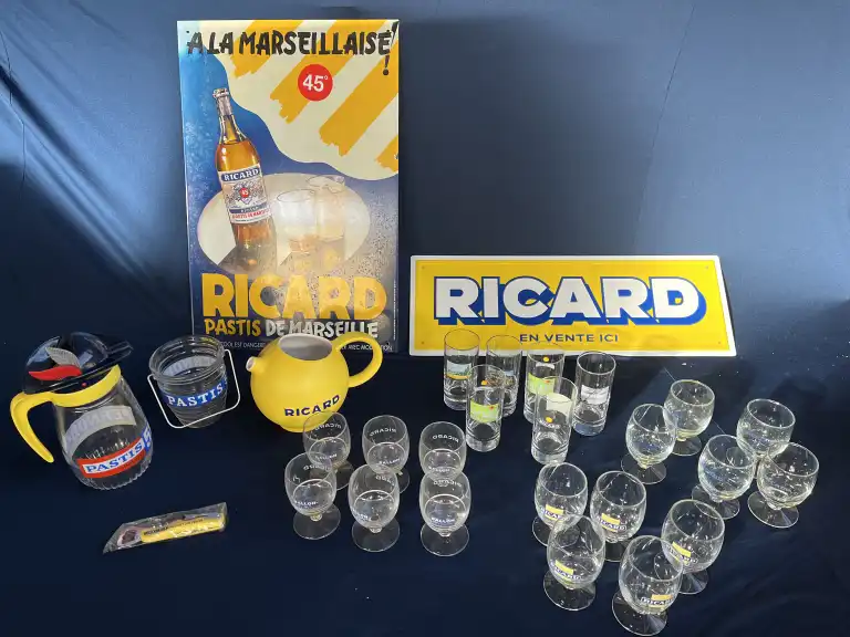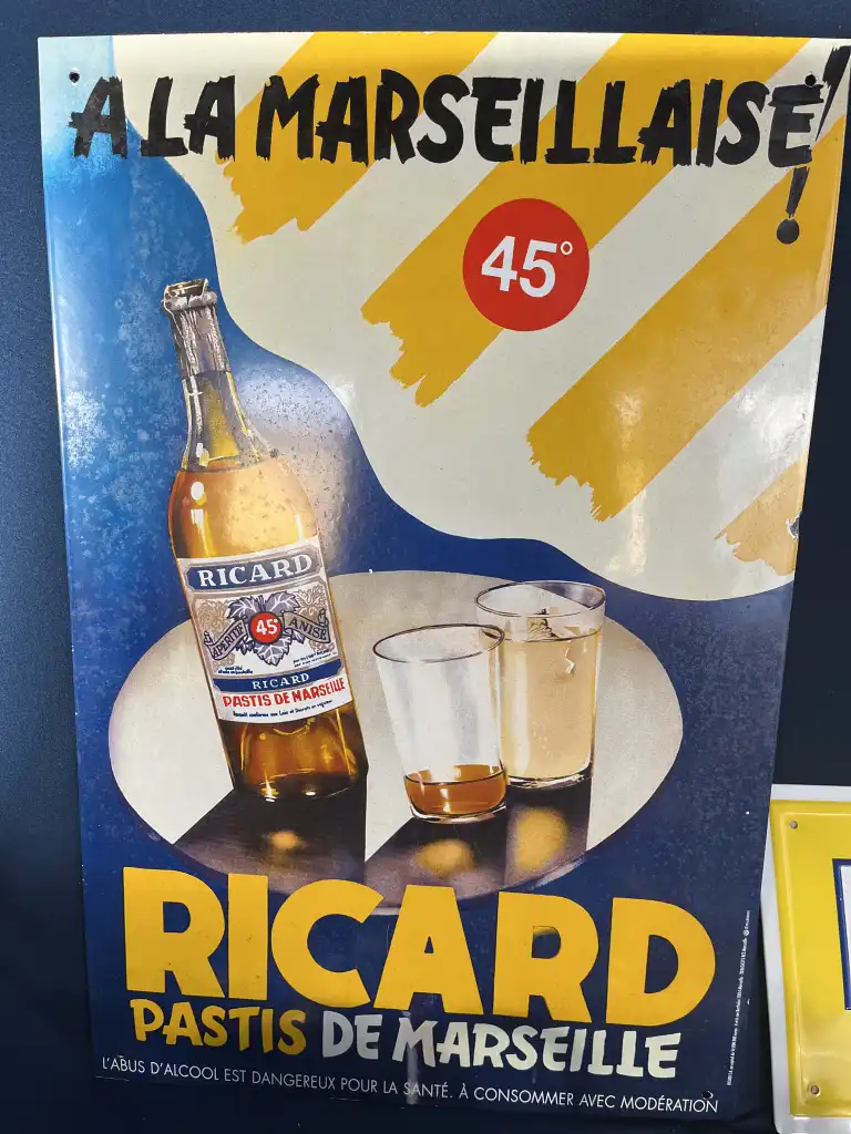 RICARD. Lot publicitaire comprenant: - 2 plaques en métal. Dim. : 60 x 40 cm et 21 x 40 cm.