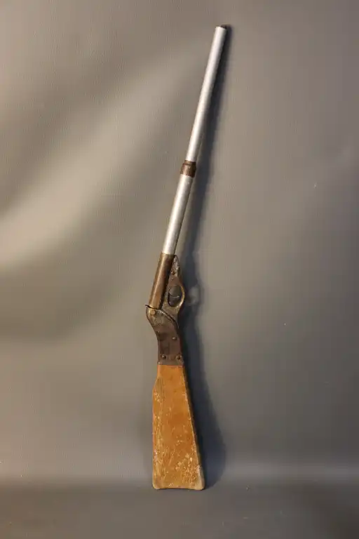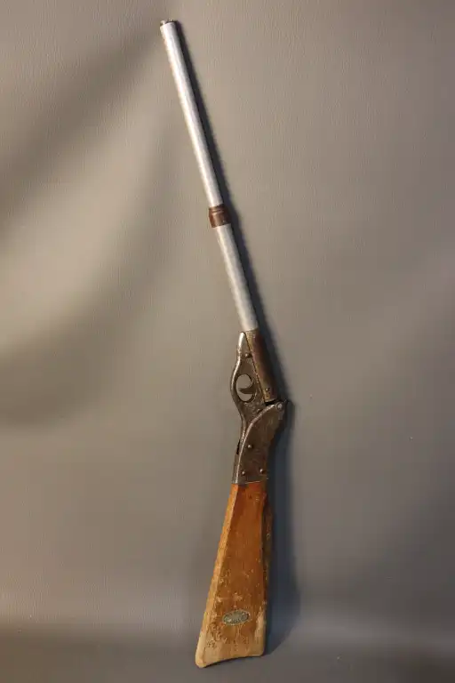 Carabine à air comprimé en bois. Marque "J.A PARIS EUNIVERSELLE". L. : 81 cm (Oxydations)