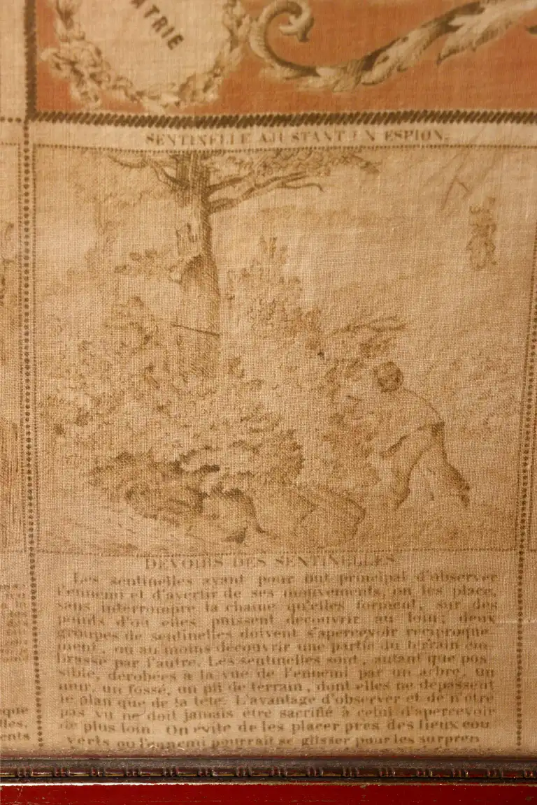 Mouchoir d’instructions militaire n°9 (fusil modèle 86). Encadré, fortement insolé mais sans déchirure (non décadré).