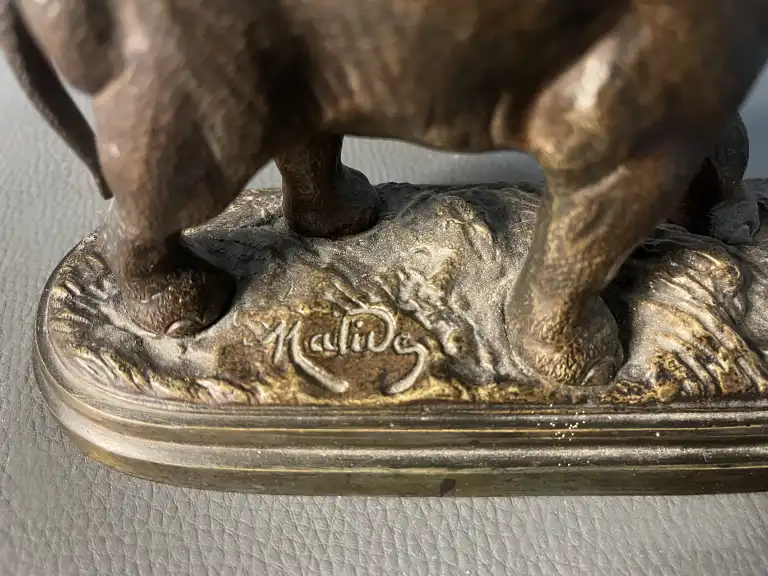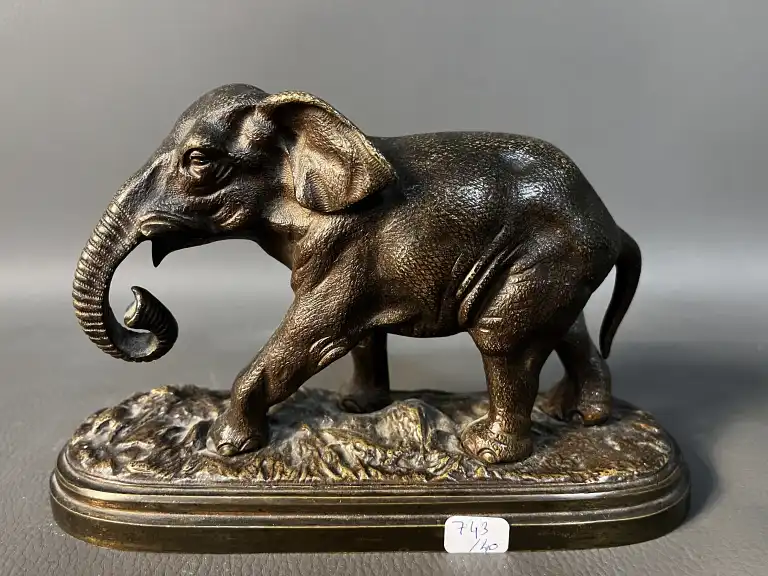 NALIDES. Elephant. Epreuve en bronze à patine brune, signée sur la base. H. : 13 cm - L. : 20 cm