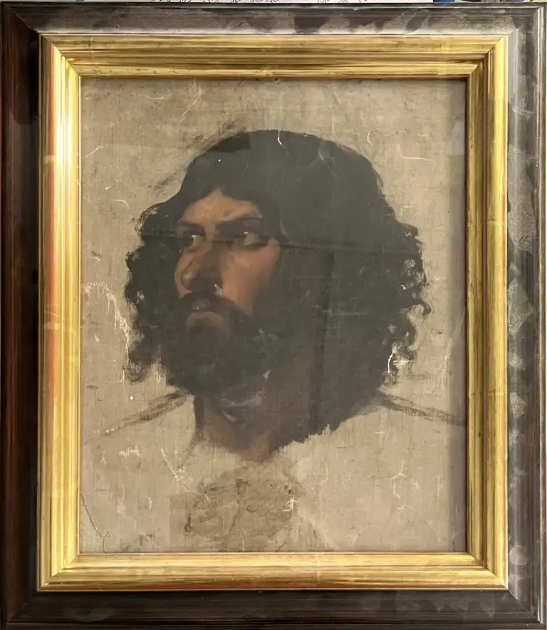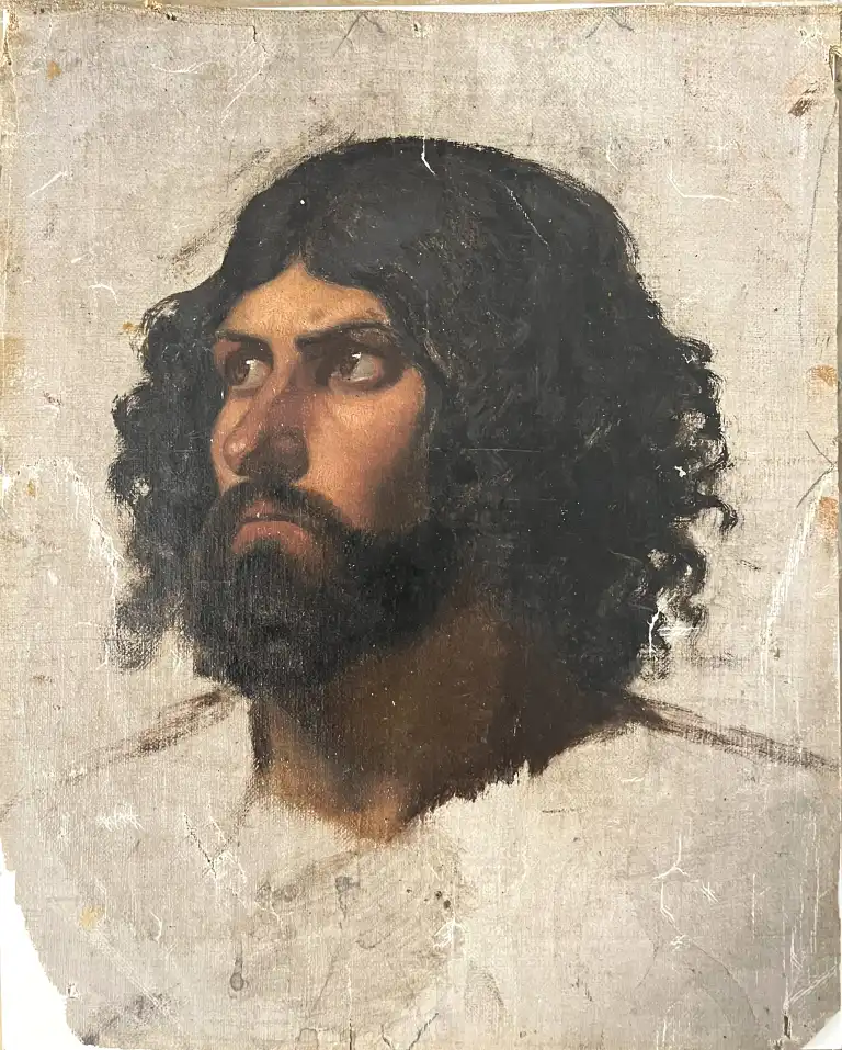 Ecole du XIXème siècle, Beaux-Arts. Etude de portrait d'homme. Huile sur toile. 27 x 21 cm