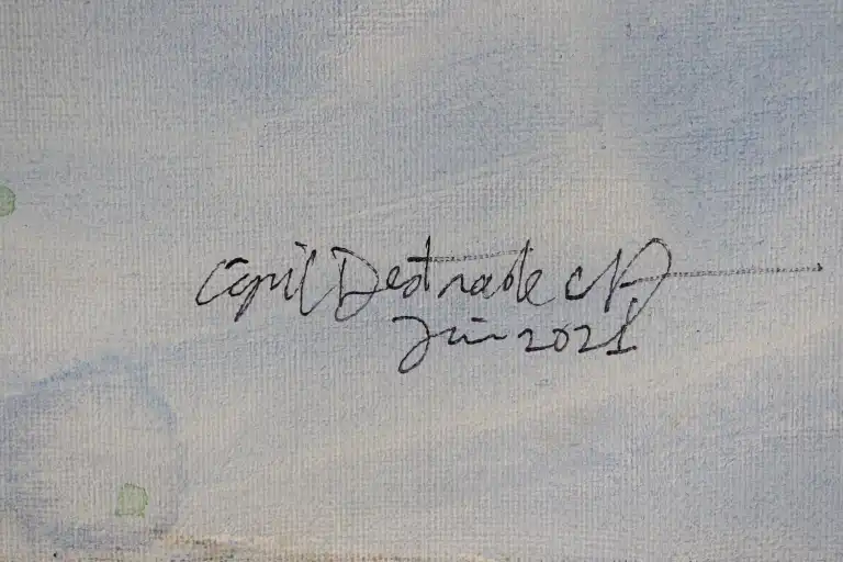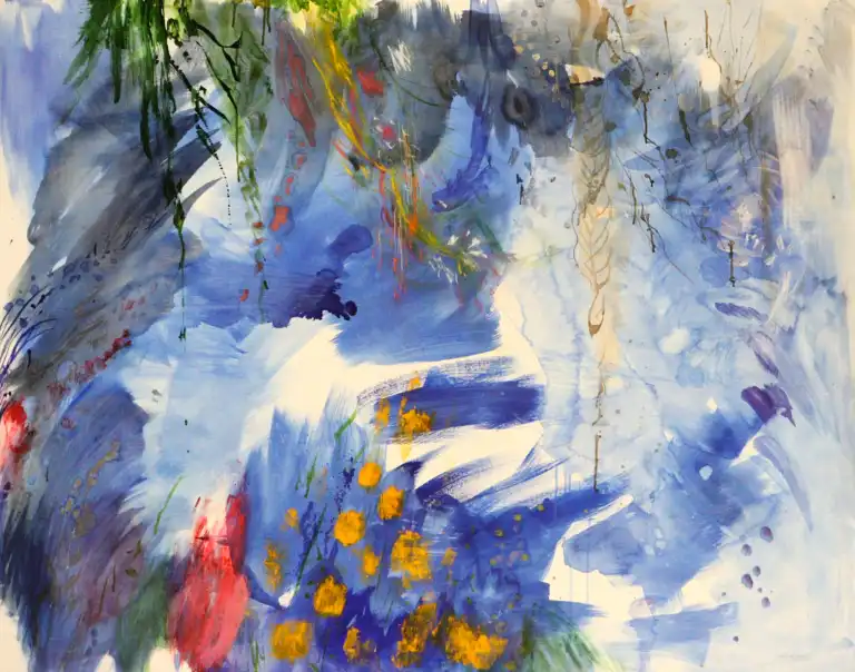 Cyril DESTRADE (né en 1970). Prélude à Ravello, 2024. Acrylique et encre, signée et datée en bas à droite. 160 x 130 cm (Toile trouée au châssis)