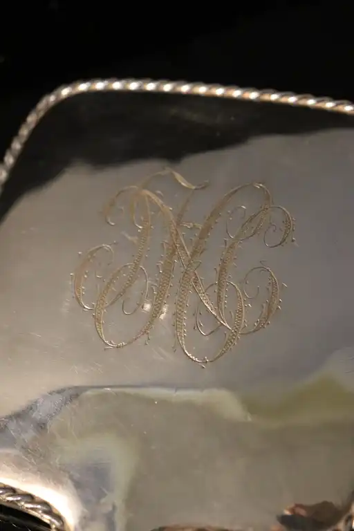 Lot comprenant un miroir dit face à main en argent 800/1000, à décor de frise en cordelette à angles arrondis. Arrière bombé à grand monogramme "NH". Poinçons STERLING 925. Orfèvre "JB". Poids brut : 395 g. (Quelques rayures) AC POUR LE MIROIR
