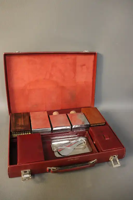 On rapporte : une boîte métallique, un chausse-pied et un accessoire, non signés.