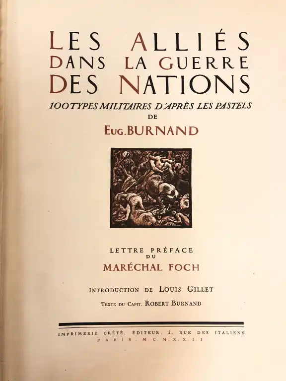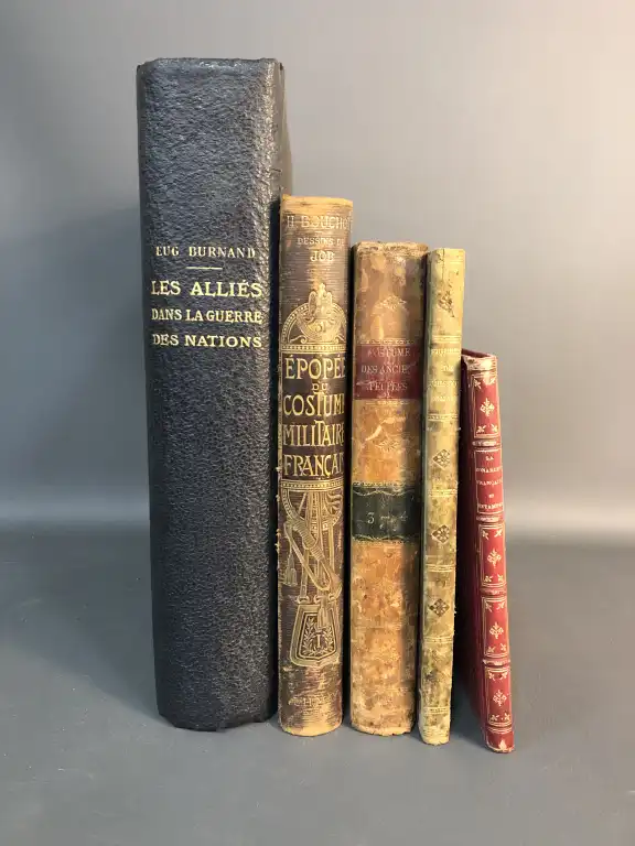 HISTOIRE - Ensemble de 5 ouvrages : - BURNAND - Les alliés dans la guerre des nations - 100 types militaires d'après les pastels de Eug. Burnand - Lettre-préface du Maréchal Foch - Paris, Crété, 1922 - Ft in folio, percale noire éditeur (reliure poussièreuse) (des petits défauts) Un des 250 ex. ntés sur papier à la forme - BOUCHOT