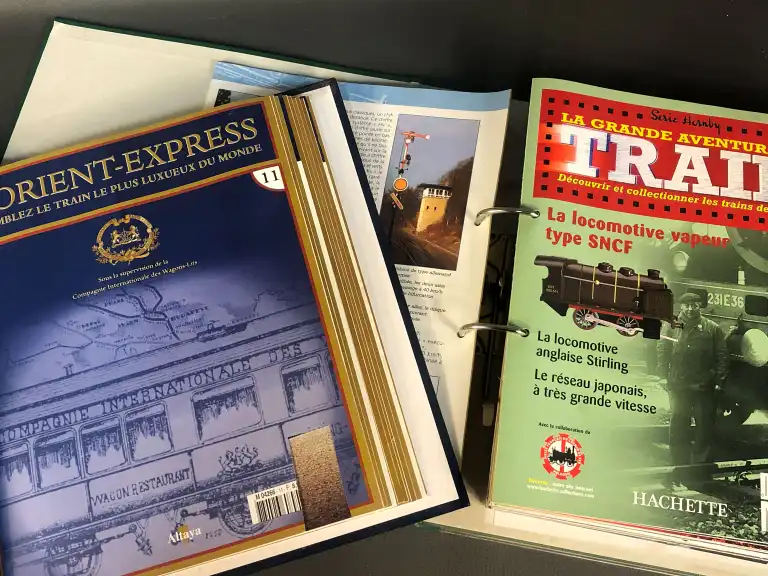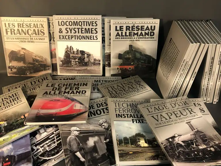 [FERROVIAIRE] EDITIONS ATLAS. Fort lot des 35 volumes de la collection "Trains de Légende" avec deux classeurs supplémentaires sur les trains.