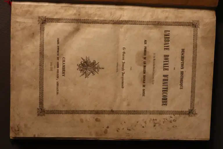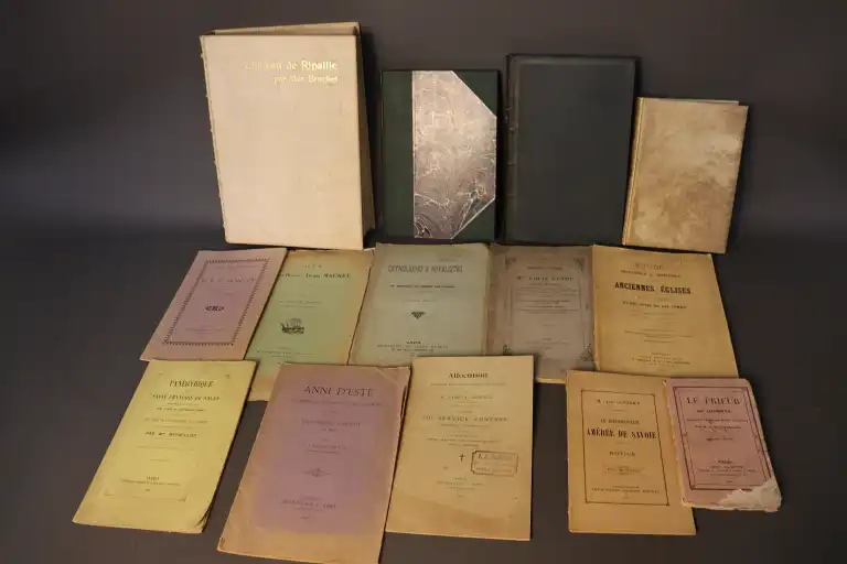 - JACQUEMOUD - Description historique de l'Abbaye royale d'Hautecombe - Chambéry, Puthod, 1843 - In 8°, demi-percale verte à coins, - BRUCHET - Le chateau de Ripailles - Ouvrage illustré de 15 héliogravures - Chambery, Dardel, 1906 - In 4°, toile crème éditeur